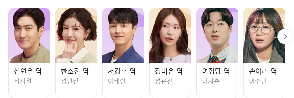 정인선은 한소진 역할을 완벽하게 소화하며, 연구원으로서의 진지함과 연애에 서툰 모습을 자연스럽게 표현합니다. 최시원은 냉철하면서도 부드러운 매력을 지닌 심연우 역을 맡아, 소진과의 미묘한 감정을 섬세하게 그려냅니다. 이수혁은 따뜻하고 인간적인 매력으로 극에 활력을 불어넣습니다. 세 배우의 케미스트리는 극의 몰입도를 높이는 중요한 요소입니다.